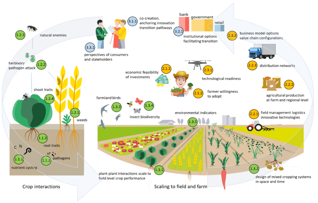 We want to identify different transition pathways applicable to different situations. Think of farmers with wide strips and long value chains, but also farmers with narrow strips marketing in a short chain. Or perhaps very different cropping systems that use crop diversity, such as agroforestry. We also look at what consumers and other stakeholders think and their role in the transition to more sustainable agriculture.